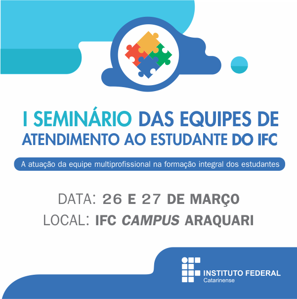 O I SEAE – I Seminário das Equipes de Atendimento ao Estudante do IFC – é um evento institucional que pretende agregar profissionais das diversas áreas que compõem as equipes de atendimento ao estudante do IFC, tendo por objetivo a troca de experiências, o debate, a qualificação dos profissionais e, sobretudo, a elaboração coletiva de soluções para o aprimoramento das políticas de atendimento ao estudante do IFC.